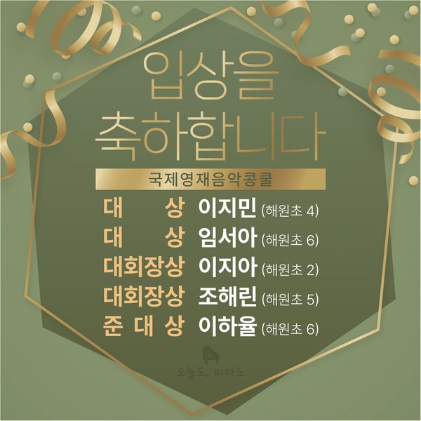 안녕하세요. 청라 오늘도피아노 입니다. 이번에도 우리 오늘도피아노 친구들이 피아노 콩쿨에서 좋은 결과를 전해주었습니다 ^^ 우리 오늘도피아노 친구들은 단기간 연습이 아닌 곡 해석부터 손모양, 터치, 페달링까지 차근차근 기본기를 다져가며 콩쿨을 준비를 했습니다. 특히 아이들마다 실력에 맞는 콩쿨곡 선택, 무대에서 흔들리지 않도록 반복 연습, 긴장을 하지 않기 위한 리허설 연습 오늘도 피아노 친구들은 꼼꼼한 준비과정을 통해 자신감을 키우고 음악적으로 크게 성장할 수 있었습니다 ! 국제영재음악콩쿨 수상내역 대상 이지민 (해원초4) 대상 임서아 (해원초6) 대회장상 이지아 (해원초2) 대회장상 조해린 (해원초5) 준대상 이하....... <img src="https://blogthumb.pstatic.net/MjAyNTEyMTNfODMg/MDAxNzY1NjMxMzUyNzc0.kNvFaggP-WodApLXzdtzF8oiPVPK7fDS_jJkpwnd1lMg.Z1YSohqmdlPGMbmkjpP4hsduCjiBnJzlyauZlbyZMpYg.JPEG/25%B3%E211%BF%F9%C4%E1%C4%F0%BC%F6%BB%F3%B3%BB%BF%AA.jpg?type=s3" />
