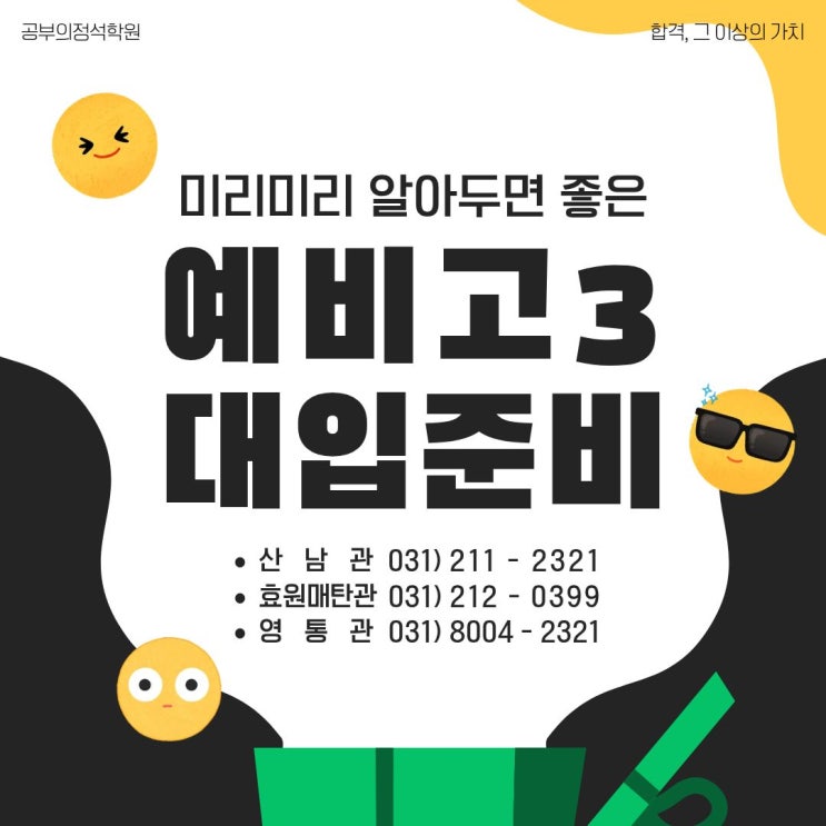📢 [예비 고3 학부모 설명회 안내] 안녕하세요, 대학입시의 TOP 고려학원입니다. 현 고2(예비 고3) 학부모님과 학생 모두 혼란스러운 입시 환경 속에서 #대입 추세와 자녀에게 적합한 전형 등에 대해 고민이 많으시죠? 💡 그래서 준비했습니다! #고려학원 에서 📚 27학년도 입시 분석 & 대입 성공전략 #입시설명회 를 진행합니다! 😀 이번 설명회를 통해 앞으로의 #대입 준비 방향을 확실히 잡아보세요! - 📅 일시: 2025년 12월 9일(화) 오후 8시 📍 장소: 고려학원 고등관 세미나실 🎯 대상: 현 고2 학생 & 학부모님 📱 문자예약: 010-6296-6781 (학교 / 학년 / 학생이름을 함께 보내주세요!) - ※ 자세한 내용은 하단 블로그에서 확인하세요! https://blog.naver.com/kevin-t/224087347916