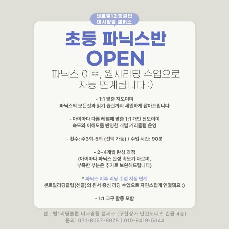 [파닉스반 개강] 미사 초등 파닉스 끝내고 원서리딩 바로 시작 어때요?