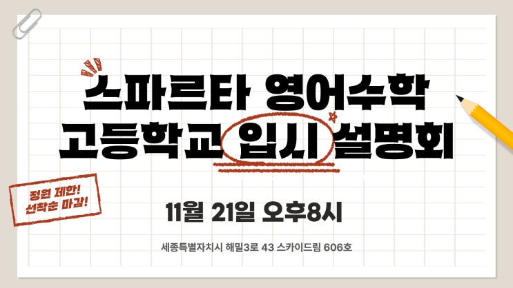 해밀동 예비고 대상 고등학교 입시 설명회 안내 [스파르타 해밀점 영어학원]