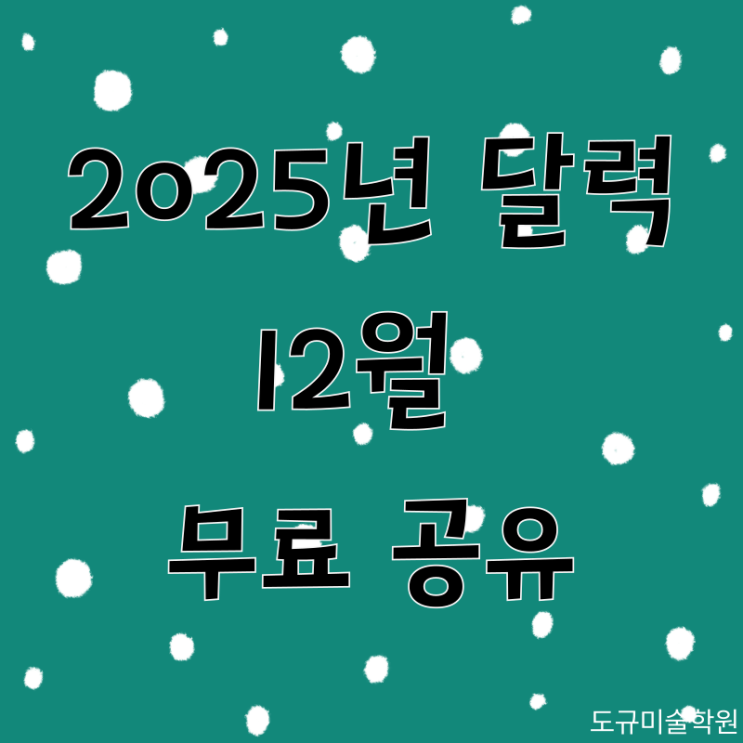 안녕하세요, 도규미술학원입니다. 벌써 한 해의 마지막 달인 12월이 다가왔습니다. 연말을 계획적으로 마무리하고 싶은 분들을 위해 이번에도 저희가 직접 제작한 2025년 12월 달력을 무료 배포해드립니다! 2025년 12월 달력- 크리스마스 포함, 연말 계획용 달력 이번 12월 달력은 깔끔한 디자인, 공휴일 포함, 인쇄용 PDF 와 엑셀 파일 두 가지 형태로 구성되어 있어 가정, 학교, 직장에서 다양하게 활용하실 수 있어요. 2025년 12월 달력에는 12월 25일 공휴일이 포함되어 있어 가족모임, 연말파티, 휴무계획을 세우기에도 유용합니다. 또한, 한 해를 돌아보며 업무 마무리, 학사 정리, 목표 점검, 송년 모임 준비 등을 하기 딱 좋은 시기이기....... <img src="https://blogthumb.pstatic.net/MjAyNTEyMTBfMTQx/MDAxNzY1MzM0NDMxMTcz.9-b9iDQexOy-Gn1bj1407kIf5iTnV0GhTckQuseGnpsg.bJQMSATCsMQ8gbFCLB40gsc8f07UoNRjYdL5_tUwBucg.PNG/%C1%A6%B8%F1%C0%BB-%C0%D4%B7%C2%C7%D8%C1%D6%BC%BC%BF%E4_-002.png?type=s3" />