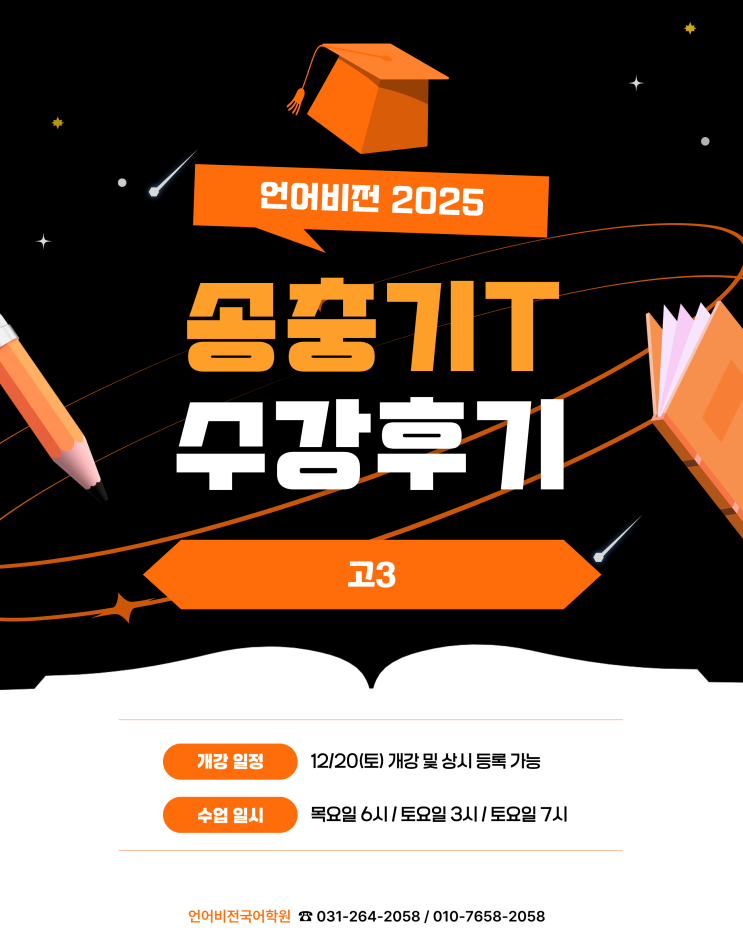 📢 [예비 고3 학부모 설명회 안내] 안녕하세요, 대학입시의 TOP 고려학원입니다. 현 고2(예비 고3) 학부모님과 학생 모두 혼란스러운 입시 환경 속에서 #대입 추세와 자녀에게 적합한 전형 등에 대해 고민이 많으시죠? 💡 그래서 준비했습니다! #고려학원 에서 📚 27학년도 입시 분석 & 대입 성공전략 #입시설명회 를 진행합니다! 😀 이번 설명회를 통해 앞으로의 #대입 준비 방향을 확실히 잡아보세요! - 📅 일시: 2025년 12월 9일(화) 오후 8시 📍 장소: 고려학원 고등관 세미나실 🎯 대상: 현 고2 학생 & 학부모님 📱 문자예약: 010-6296-6781 (학교 / 학년 / 학생이름을 함께 보내주세요!) - ※ 자세한 내용은 하단 블로그에서 확인하세요! https://blog.naver.com/kevin-t/224087347916