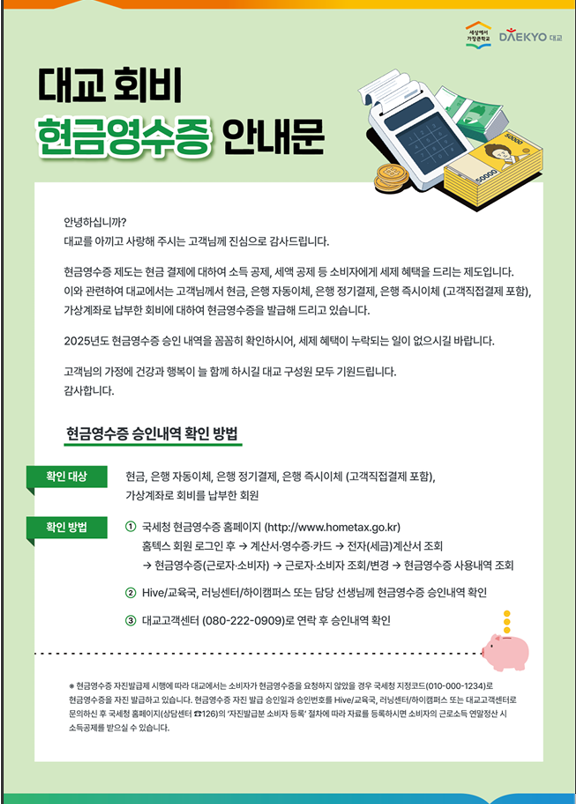25년 대교 눈높이 회비 현금영수증 안내 드립니다.