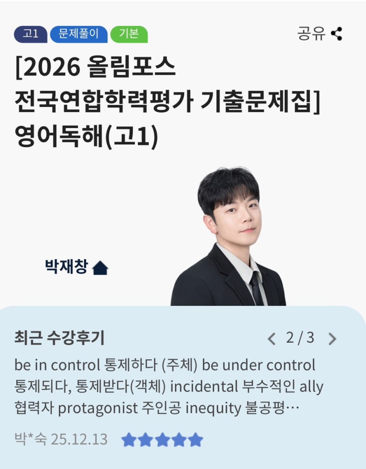 예비고1 영어, 기본값은 EBS입니다 고등 영어는 중등처럼 감각으로 밀어붙이는 과목이 아닙니다. 출제 구조, 지문 유형, 문제 패턴을 공식처럼 익혀야 성적이 안정됩니다. 그 시작점이 바로 EBS 기출 기반 교재입니다. ⸻ 왜 예비고1 영어는 EBS가 기준일까? 1️⃣ 전국 공통 출제 흐름을 그대로 반영 고1 시기 영어 내신과 전국연합학력평가는 • 지문 길이 • 정보 밀도 • 선지 구성 방식 이 거의 동일합니다. EBS 전국연합 기출은 "고1 영어의 표준 난이도”를 가장 정확히 보여줍니다. ⸻ 2️⃣ 독해의 ‘기본 근육’을 만드는 단계 예비고1 때 가장 중요한 건 어려운 문제를 푸는 게 아니라, • 문장 구조를 정확히 해석하고 • 문단....... <img src="https://blogthumb.pstatic.net/MjAyNTEyMTRfMTQ3/MDAxNzY1NjczMzQ3ODcz.LhWJT-xdGmEbGaaa0DzqmmafODdojHHGrtgVYS8e0zkg.mAY60JuabRkPWrglDJhbWaAc9ZgM104FfpXp7KCdBgwg.JPEG/IMG%A3%DF9646.jpg?type=s3" />