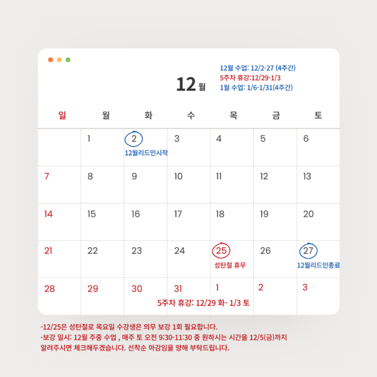 [특강 1] (초등) 한국사 마스터 - 일정 : 12/22~2/27 / 총 28회기 - 요일 및 시간 : (A반) 매주 월,수,금 오전 10시 ~11시 30분(90분) / 28회기 : (B반) 매주 화.목 오전 10시~12시(120분) / 17회기 - 대상 : 초등 4~6학년 (* 반별 최대 6~8명, *선착순 마감) - 11월 말까지 사전등록수강생에 한해 첫 달 수업업료 20%할인. - 혼자 책 읽기, 한국사 흐름, 글쓰기 어려워하는 학생 필수!!