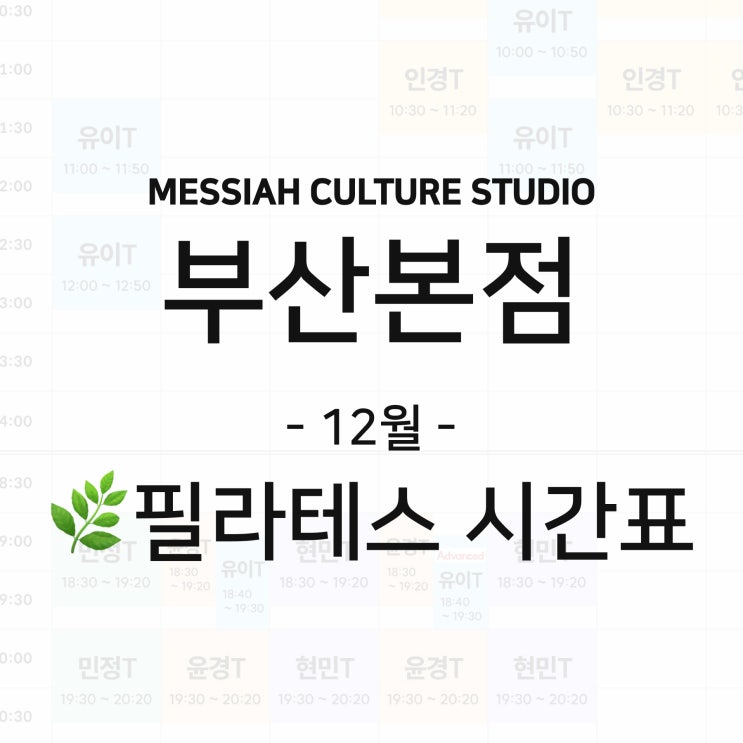 메시아컬쳐스튜디오 부산본점 12월 필라테스 시간표 :: 서면필라테스/범일동필라테스