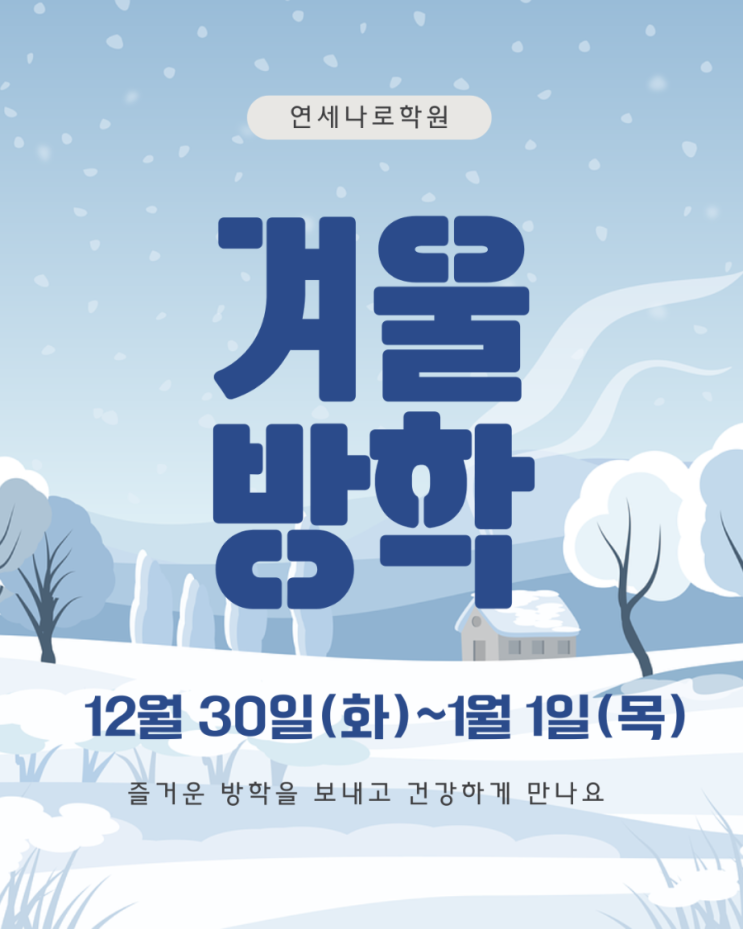 안녕하세요? 연세나로학원입니다. 짧지만 즐거운 방학 보내고, 1월부터 파이팅입니다!! <img src="https://blogthumb.pstatic.net/MjAyNTEyMjFfNTYg/MDAxNzY2MzA1MzQ4MjA3.DEXNh00TPi1zUN35dSXcKgePZ32bzxLUNreiirs7rpgg.LWxVB95fAwdP5G8F1gWgZHiikaHQfYvaCKtsIgZeJh4g.PNG/900%A3%DF1766151604051.png?type=s3" />