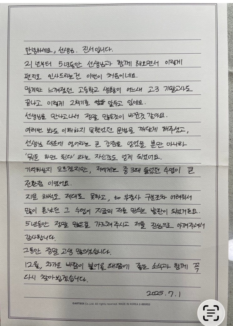 학원 운영을 하다 보면 늘 같은 마음으로 시작해도, 어느 순간 지치고 버거워질 때가 있습니다. 하루에도 몇 번씩 아이들을 붙잡고 설명하고, 이해할 때까지 반복하고, 때로는 단호하게 이끌어야 하는 순간들 속에서 ‘내가 잘하고 있는 걸까’라는 질문이 스스로에게 던져질 때도 있습니다. 그럴 때마다 저는 제자들과의 시간을 떠올립니다. 처음에는 아무것도 모르던 아이가 어느 순간 스스로 문제를 풀어내던 순간, 자신 없던 눈빛이 확신으로 바뀌던 그 짧은 찰나들. 그리고 무엇보다, 묵묵히 믿고 따라와 주는 아이들의 태도. 그 기억들이 저를 다시 자리로 돌아오게 만듭니다. 아이들이 선생님을 믿고 따라준다는 건 결코 당연한 일이 아닙....... <img src="https://blogthumb.pstatic.net/MjAyNjA0MDhfMTEy/MDAxNzc1NjM5MzAzNzU5.wzuvr6XVMf3jL-JSNF5_iNqHDxvxBvclkXLIOMlJniYg.4kgtO_kIU8MjYAe90FwtjPwkqHpZJiOgzUf9EuMExjUg.JPEG/IMG%A3%DF9448.jpg?type=s3" />