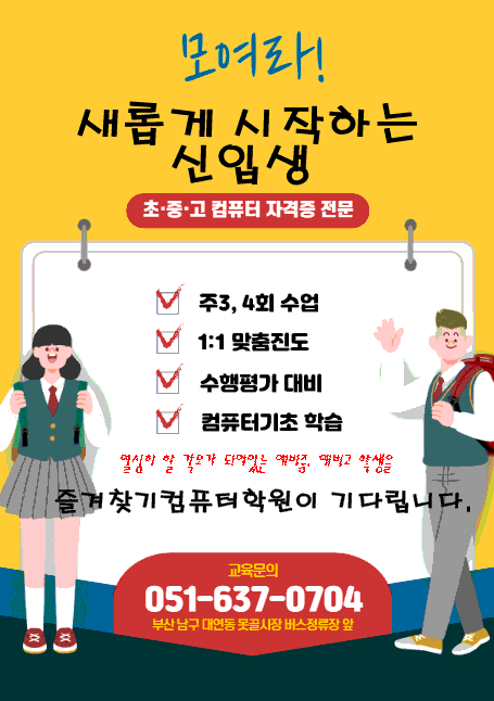 대연동 컴퓨터학원 신입생 여러분들의 내일을 응원합니다.