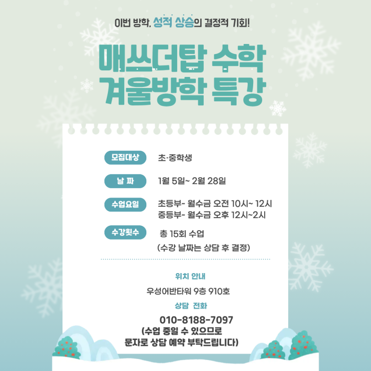수미사 중계관] 은행사거리 수학학원 겨울방학 특강안내