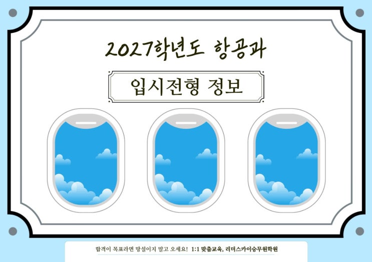 #항공과내신반영 #항공과면접 #항공과입시 안녕하세요:) 안양승무원학원 리더스카이 승무원멘토입니다. 지난번 인하공전 항공운항과 입시정보에 이어 항공학과 주요대학의 입시정보에 대해 포스팅해 드리겠습니다. 2027학년도 항공과 입시는 어떻게 바뀌었는지 살펴볼께요. 2027학년도 연성대 항공서비스과 전형정보 및 내신반영 2027 연성대 항공서비스과 면접일은 수시1차: 2026년 10월17일~18일 수시2차: 2026년 12월5일~6일 정시: 2027년 1월 23일 2027 연성대 항공서비스과 모집인원 수시1차: 일반고73명 특성화고6명 수시2차: 일반고21명 특성화고4명 어학특기자2명 정시: 일반전형 3명 2027 연성대 항공서비스과 내신반영 수시: 5개학기 중....... <img src="https://blogthumb.pstatic.net/MjAyNTExMjVfMTcg/MDAxNzY0MDUzMjAwMjU1.IMMUF_W63WJ3-wKmUrs85mSHCduerBZqvY6rtZzAJQMg.VcJ1PfGprBU014KeyBRoHtkKnueB4txdIahyI_HKsbIg.JPEG/2027%C7%D7%B0%F8%B0%FA%C0%D4%BD%C3.jpg?type=s3" />