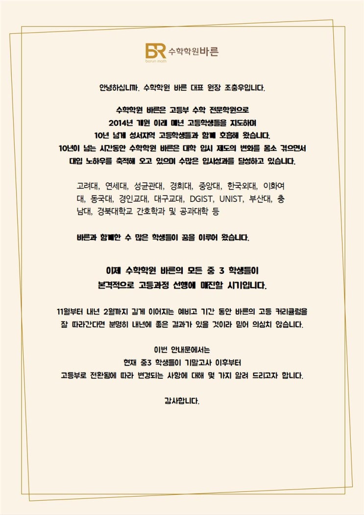 [예비고1] 고등과정 수업 안내★★