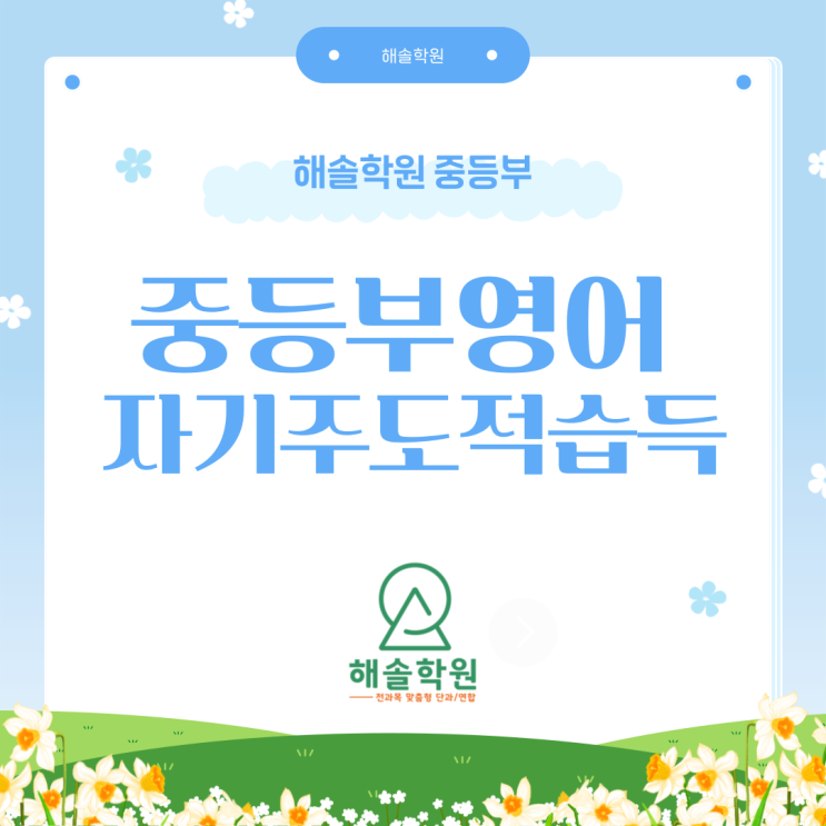 중등영어는 초등영어와 고등영어의 중간 단계가 아닙니다. 사실상 영어 실력이 결정되는 가장 중요한 시기입니다. 평촌 중등영어 상담을 하다 보면 “단어는 아는데 독해가 안 된다”, “문법을 배웠는데 적용이 안 된다”는 이야기를 정말 많이 듣게 됩니다. 이런 문제의 원인은 단순합니다. 학생이 이해하지 못한 상태로 수업이 흘러가기 때문입니다. 강의식 수업만으로는 아이가 이해했는지, 따라오고 있는지 확인하기 어렵습니다. 그래서 해솔학원은 평촌 중등영어 수업을 고민하는 학부모님들을 위해 <과외식 수업 구조를 갖춘 소수정원 중등영어 수업>을 개설했습니다. 해솔학원 중등영어 수업은 개별진도식 수업을 진행하지만 가장....... <img src="https://blogthumb.pstatic.net/MjAyNTEyMTJfMTk2/MDAxNzY1NTQyOTc0Nzg5.MEy4MXaCIVkhEEfo9u7ILq0JjkaCpy801Yl7L5U2icAg.aLj3m5T2f7lBsZifUq8u4RzkKO84r1UpoRP-czSBm_Ig.PNG/%C1%A6%B8%F1%C0%BB-%C0%D4%B7%C2%C7%D8%C1%D6%BC%BC%BF%E4_-001_%2851%29.png?type=s3" />