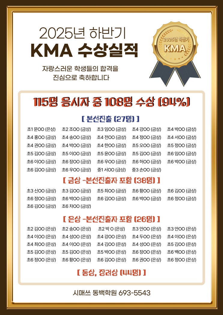 성공은 최종 목적지가 아니라, 여정을 의미한다 결과보다 여정, 즉 과정에서의 배움과 성장이 더 중요하다는 의미입니다. 최근 숏폼영상과 스마트폰의 대중화 등의 이유로 빠른 정보 접근과 즉각적 반응에 익숙해져서 아이들이 무언가 목표를 위해 노력하고 몰입하며 기다리는 과정을 힘들어하는 경우가 많습니다. 수학이라는 것도 지루하지만 꾸준한 과정을 거쳐서 실력 향상과 좋은 성적을 얻게 되며 그 과정에서 학습의 방법도 익힐 수 있게 됩니다. KMA 하반기 학력평가를 준비하면서 결과와 상관없이 부족한 부분을 보완하며, 문제해결을 고민하는 과정에서 생각하는 방법, 문제를 읽고 접근하는 방법, 수식으로 서술하는 방법들과 힘들지만....... <img src="https://blogthumb.pstatic.net/MjAyNTEyMTJfMjkg/MDAxNzY1NTE0NzMxODY4.cEZCF3r2P4EyCcMYJbWBgx89FcEqq8xLKEGqNLAQAFog.eySYbFe_0nciWcZu91yX8Qgay0JydeXo-T_-nUHy7JAg.JPEG/002.jpg?type=s3" />