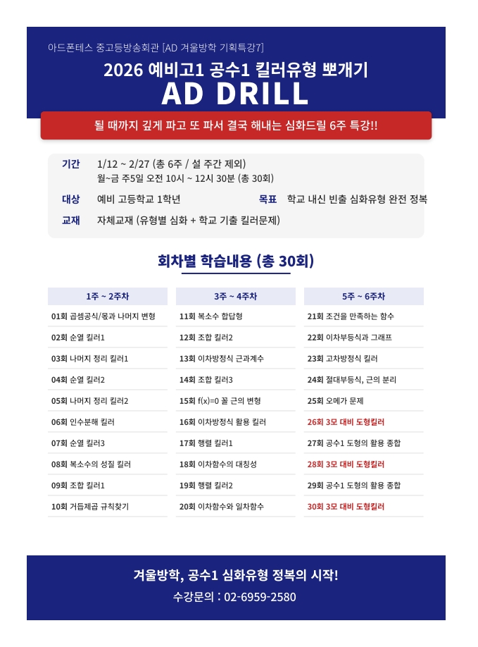 [중고등방송회관] 겨울방학 기획특강 - 공수1킬러유형 뽀개기