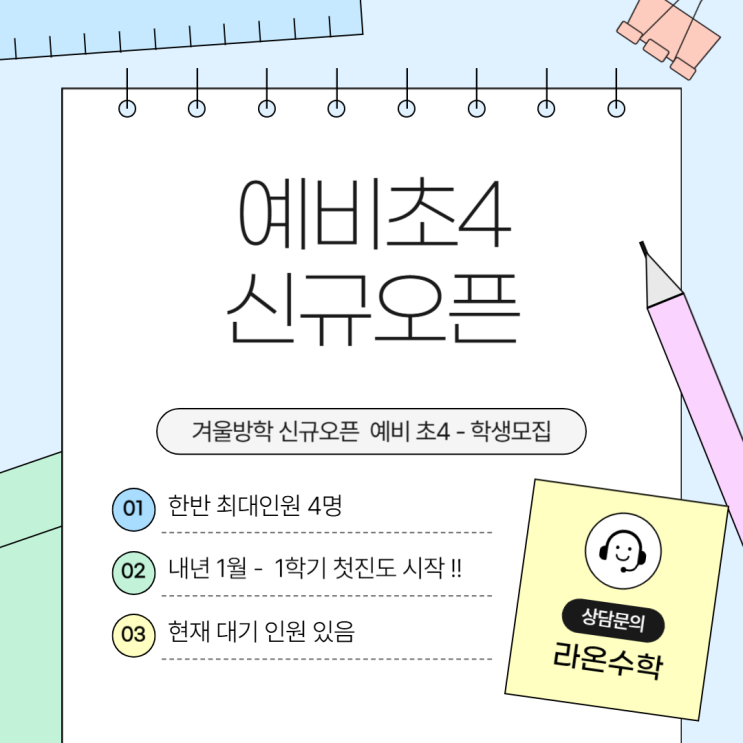 # 초5 ~ 고3반은 일부 마감된 반이 있어 수강신청시 학원으로 꼭 확인하시기 바랍니다. - 라온수학학원 - 수업문의 : 010 . 3544. 9355 ( 전학년 수강생 모집중입니다. ) <img src="https://blogthumb.pstatic.net/MjAyNTEyMTFfMjk1/MDAxNzY1NDI2NDIxODg5.KM4PJAXJ65QpCrB4b3XmpXORoeIaBSX9TsJb99mcKP8g.L5KeeEZ6vww25a_6Lf10CIQ6TdZnDW9KeogRQ-_2w2wg.PNG/%BF%B9%BA%F1%C3%CA4%B8%F0%C1%FD.png?type=s3" />