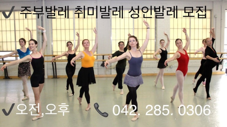 대전 알롱제 무용학원 (가오점) 모집합니다. 처음이셔도 괜찮아요 ^^ 요즘엔 성인발레, 취미발레가 대세죠 ! 대전 알롱제 무용학원에서 함께하세요. 12월 2일부터 왕초보 개강합니다. 발레 처음이신분,스트레칭 필요하신분,근력 약하신분 모두 모두 환영합니다 !! 이번주까지 접수해주셔야 합니다^^ 상담문의 ) 042. 285. 0306 카카오톡 ) allongeballet <img src="https://blogthumb.pstatic.net/MjAyNTExMjRfMTIy/MDAxNzYzOTY5MjgxMzg5.iQEH0rgo9o-5iUpOKphVzWmaVgU2rT5-olG981nlOz4g.DxVtf_DnJXkV1-QWdqu-Tc0nLFdtVU8u7VQBn617vNsg.JPEG/11.jpg?type=s3" />