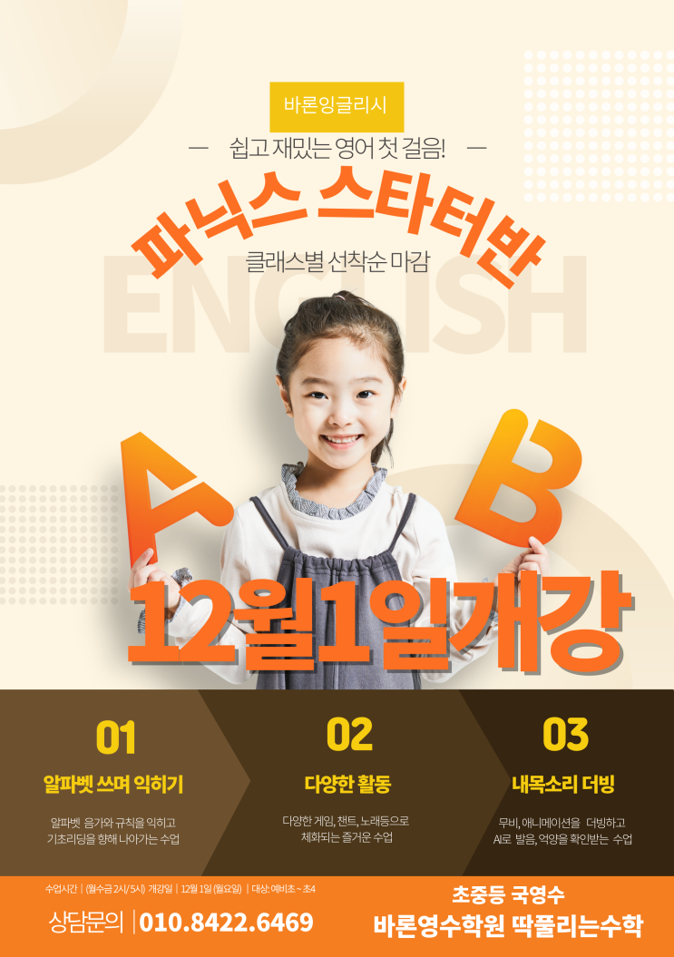 겨울방학, 그냥 지나가면 2월에 다시 제자리입니다. 하지만 제대로 준비하면 이번 방학이 영어 실력 반전의 기회! 샤이닝 잉글리시는 유난히 긴 이번 겨울방학을 위한 최고의 맞춤 프로그램을 오픈합니다. ■ 특강 신청 기간: 2025년 12월 29일(월)까지 / 12월 12일(금)까지 얼리버드 할인 2만원 (결제 완료시) ■ 특강 기간: 2026년 1월 5일(월) ~ 2월 28일(금), 클래스별 상이, 설 연휴 제외 ■ 신청 방법: 문자로 신청 ( 전화 : 0507-1366-0854) 대한민국학생 영어말하기대회 3학년 이상, 큰 무대 경험을 해보고 싶은 추천 학생 파닉스 정규과정 예비 1,2학년 클래스: 영어가 처음인 학생 발화보장, 원서 리딩 확장 예비 3학년 클래스: 파닉스....... <img src="https://blogthumb.pstatic.net/MjAyNTEyMDhfOTgg/MDAxNzY1MTMwODY2ODIw.FIvkMeO--GvrSzmsmCRLkliSXxrGdCvOw0UmUQ6WygAg.-eFKxcbHwSfbegRmgW99Twhnim37wF6FXCphzVICKZsg.JPEG/900%A3%DFShin_i_%C5%C2glis_ng%A3%DF20251208%A3%DF024353%A3%DF0000.jpg?type=s3" />