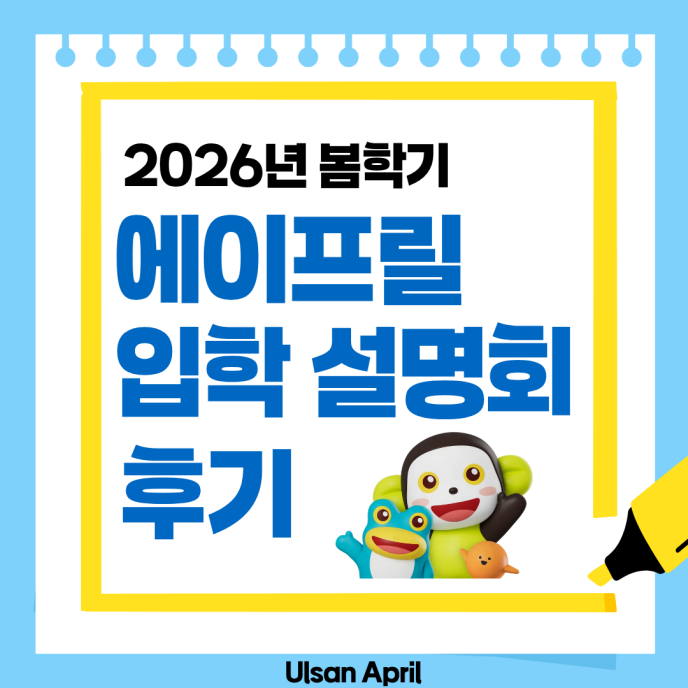 안녕하세요, 울산 April 어학원입니다. 2026 봄학기 1차 입학설명회가 진행되었습니다. 이번 설명회에 참석해주신 학부모님들의 많은 관심과 성원에 감사드립니다. - 12월 3일(수) 오전 11시 울산 롯데시티호텔 각 레벨별 April 프로그램 어떠한 방법론으로 수업을 하는지 April 교육목표와 April의 읽기, 듣기, 말하기, 쓰기 영역이 초등영어 뿐만 아니라 중,고등으로 확장했을 때 현 언어학습의 키포인트인 “표현과 이해” 의 역량으로 얼만큼 끌어질 수 있는지 설명하는 시간이었습니다. 초등이 끝이 아닌 영어 왜 April이 확실한 답이 될 수 있는지 2026년 영어 로드맵을 준비하는 학부모님고ㅏ 함께 공유해보았습니다. * 울산 롯데시....... <img src="https://blogthumb.pstatic.net/MjAyNTEyMDRfMjMx/MDAxNzY0ODM4MjQ1NzUx.2tYJBr9JbHtm93BsKYMEZLSsjWMoEZzrXYGal8ZnPUUg.ANxsg5M5H8O333P3WliajvQJv4sJ8g6R2HOtaufH_gEg.PNG/image.png?type=s3" />