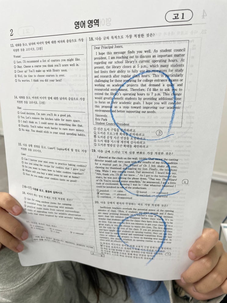 잉글리시아이 중1 학생, 고1 9월 모의고사 ALL 정답?! 잉글리시아이는 역시 다릅니다! 잉글리시아이에서 공부 중인 중학교 1학년 학생이 도전으로 풀어본 고1 9월 모의고사 영어 영역에서 푼 문제를 이렇게 맞히는 놀라운 성과를 이루었어요! 보통 고1 모의고사는 어휘 난도도 높고 지문도 길어서 중학생에게는 어려운 시험으로 알려져 있는데, 잉글리시아이 커리큘럼을 성실히 따라온 이 학생은 정확한 독해력 + 체계적인 문제 접근법 덕분에 모의고사에서도 흔들리지 않는 실력을 보여줬습니다. 중1이 고1 시험을? 그것도 이렇게 정답? 가능합니다. 잉글리시아이에서는 ‘학년을 뛰어넘는 실력’이 현실이 됩니다. 우리아이 영어는 잉....... <img src="https://blogthumb.pstatic.net/MjAyNTEyMTNfMTI3/MDAxNzY1NjI5OTY4NzEx.r869NY5onk3AAfvqP3i2l3cS1eKI06vfQyMkxRCj2NIg.lYHzShmRjToRB-s8QNVLdhqcJLgjlnCLF9_iTjdrPEIg.JPEG/KakaoTalk_20251213_214307803.jpg?type=s3" />