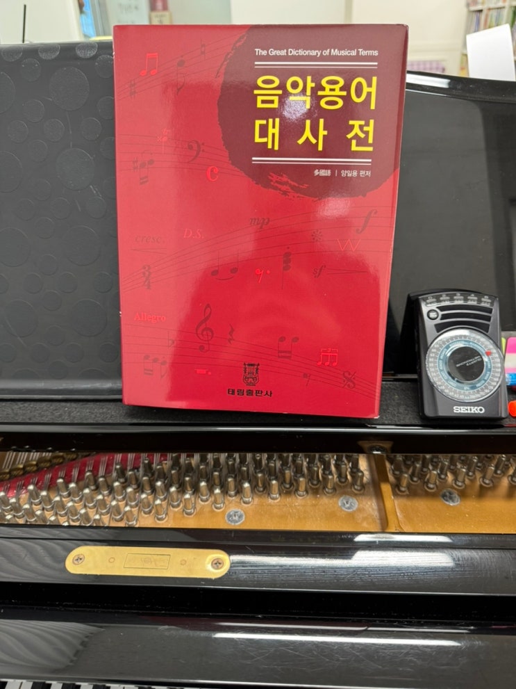 안녕하세요 봄쌤입니다:) 한 달에 한 권씩 꾸준히 음악 서적을 구비한지 벌써 1년이 훌쩍 지난 것 같아요 이번 달에는 어떤 책을 살지 많이 고민하며 찾아보는데, 이번 달에는 고민 없이 음악 용어 사전을 선택했답니다! 학생들이 이론 공부를 하며 음악 용어를 익히지만 글로 배운 것을 음악에 적용하는 것은 또 다른 학습인 것 같아요. 모르는 용어는 직접 찾아보고, 곡에 적용시켜 연습할 수 있도록 작은 사이즈의 음악 용어 사전과 제가 볼 대 사전을 준비했답니다 이화피아노의봄은 여러 가지 경험을 통해 음악을 배우고, 느낄 수 있도록 다양한 것들로 채워나가거 있습니다 <img src="https://blogthumb.pstatic.net/MjAyNTEyMTFfMTUx/MDAxNzY1NDMzNDk4NTU2.FZ6mVHBbGWHN62bnwFclkwhUw-2WxsIKR22jPUXCsV0g.2T1A6UlUZ7jxYlA25A7U1fYjK6v9GBvr9WlaAvU7I5Ag.JPEG/IMG%A3%DF7794.jpg?type=s3" />