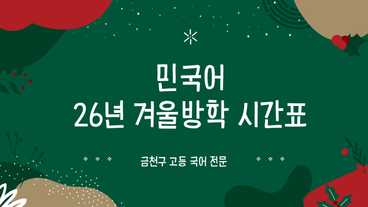 [금천구 고등 국어 전문][동일여고 국어][민국어] 26년 1월 겨울방학 시간표 안내