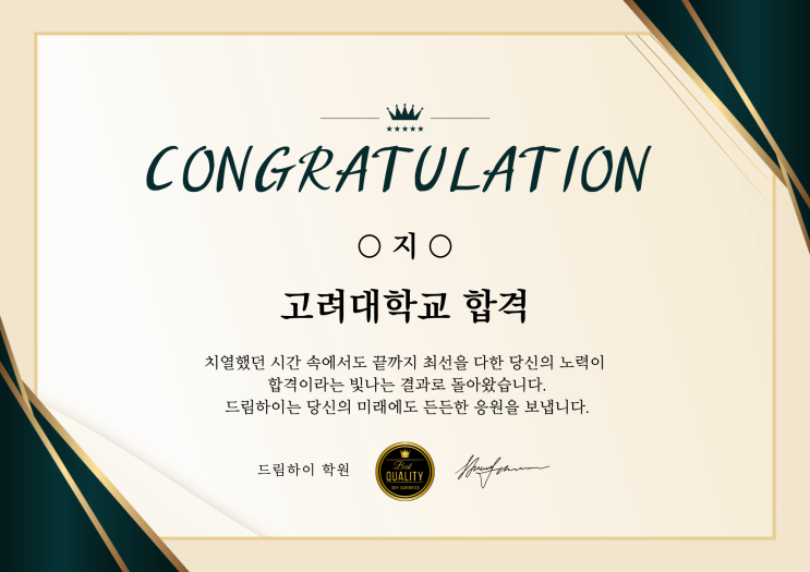 드림하이 학원 2026학년도 대입 서울 고려대학교 입학 축하합니다!♥ 고등학교 내내 함께 한 우리 ○지○ 학생!! 좋은 결과를 얻게 되어 드림하이가 진심으로 축하합니다 ^^ 힘들었던 입시 기간 고생많았고 이제 행복한 일만 가득하길 응원하겠습니다!! <img src="https://blogthumb.pstatic.net/MjAyNTEyMTJfMzQg/MDAxNzY1NTE1NDIzODI4.b02Xq0DfeDMHCbSLTxxb-k9aeInI9wop_VLK9bBxyyog.eltWId4FyZX-EwjMeXYZDOyHF2a1kPqdjh4o8mhVmbog.PNG/2.png?type=s3" />