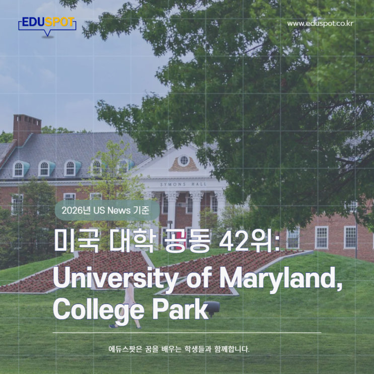 [에듀스팟] 2026년 US News 기준 미국 대학 공동 42위: University of Maryland, College Park