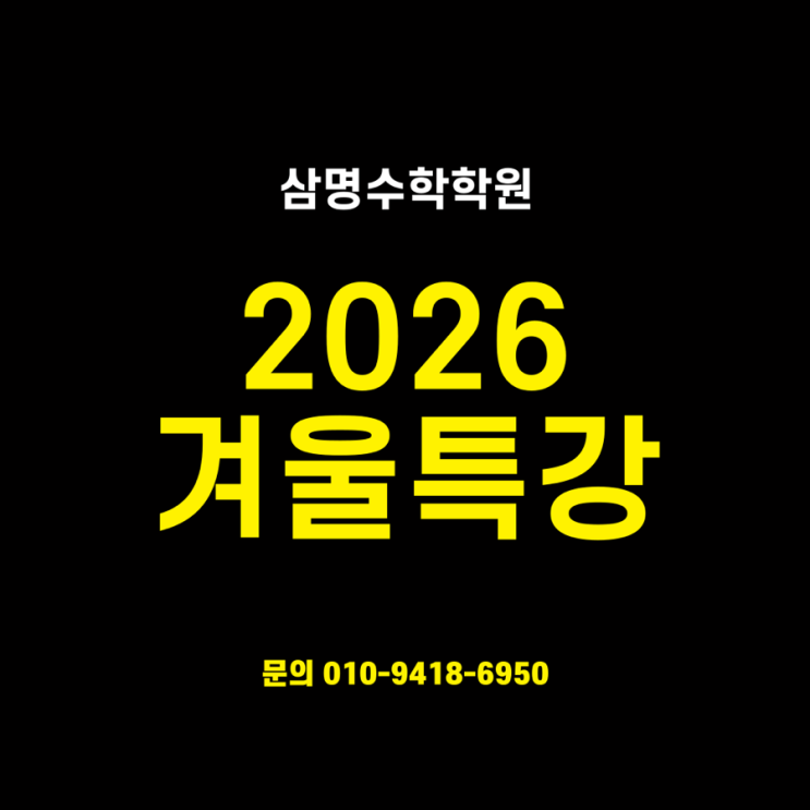 안녕하세요 옥동 삼명수학학원입니다^^ 오늘은 2026년 겨울특강 안내 드리려고합니다 총 3개의 특강이 준비 되어 있습니다 원장님 정석실력 공통수학1 특강 공통수학1을 배운 학생들이 수강 가능합니다 정석 실력 교재의 연습문제 파트 중 실력부분은 민사고,과학고의 교과서이므로 특목고 입학예정인 학생들은 완벽한 이해와 반복적 복습으로 빠른 속도의 풀이가 가능해야합니다 일반고 학생의 경우, 1등급중에서도 초상위권을 준비중인 학생은 많은 실력 향상과 어려운 문제를 해결하는 사고력이 자라고 문제를 읽는 눈이 커집니다 이번 특강은 어려운 강의이므로, 강의를 그냥 듣기만 하는것이 아니라 강의를 들은 후 2번 이상의 복습을 반드....... <img src="https://blogthumb.pstatic.net/MjAyNTExMjJfMjAz/MDAxNzYzODE1NzE5NDA0.PSuRVlyyOoiGUoEx5qtaEDrOYUWH-UQl9P2XFvA3nJkg.m8-pdN6VLOnkuNnOJG_QUnkgl4pJilVGIfSTZN5t_N0g.PNG/IMG%A3%DF6551.PNG?type=s3" />