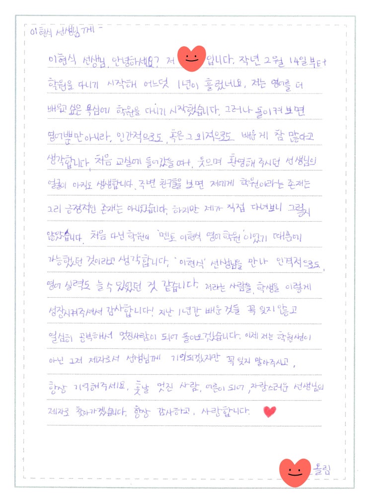 사랑하는 제자 PL에게 [봉선동영어학원]