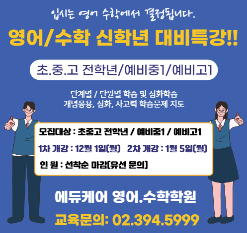 수미사 중계관] 은행사거리 수학학원 겨울방학 특강안내