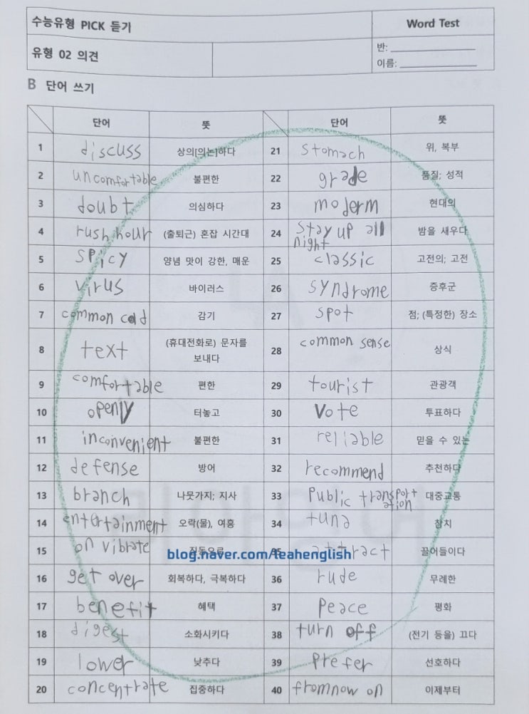 능률 수능유형 PICK 듣기; 대화를 듣고 의견을 잘 이해하기 위해 필요한 어휘들을 성실하게 암기합니다. #리아영어 #영어스타그램 #영어수업 #영어공부 #영어듣기 #능률수능유형PICK듣기 #영어교습소 #명일동영어 #암사동영어 #강동구영어 #초등영어 #중등영어 #고등영어 #명덕초 #명일초 #강일중 #명일중 #배재중 #성덕여중 #신암중 #선사고 #성덕고 #명일여고 #배재고 #한영고 #강동롯데캐슬상가 #강동롯데캐슬상가2층 #강동롯데캐슬퍼스트 #프라이어팰리스 #강동현대홈타운 <img src="https://blogthumb.pstatic.net/MjAyNTEyMTNfMjc1/MDAxNzY1NjAzMjM3NzQ3.elJQGwrmrPqCa1HlGRUkpEsRzFd8c4uSVxLDFXlHvhEg.YJaRhk3doj3gZmyrLf6BX3DVvQ1ug7CPU9S5VEfpDlEg.JPEG/900%A3%DF1765603235314.jpg?type=s3" />