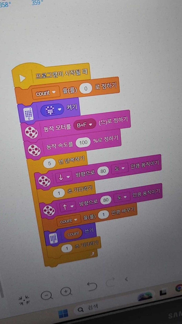 겨울학기 2주차. 윗몸일으키기 이번 수업은 윗몸일으키기가 무엇이고 왜 하는 운동인지 윗몸일으키기를 해본적이 있는지 아이들과 이야기를 나누며 시작했습니다. 먼저, 윗몸일으키기 운동을 함께 해주는 로봇인 트레이너 레오를 조립하였습니다. 많은 방법으로 모터를 제어하여 로봇을 움직일 수 있지만 이번 시간에는 각도를 이용한 코딩으로 로봇을 움직여 보았습니다. 로봇이 정확히 눕고 일어날 수 있는 각도를 포트뷰를 이용하여 알아보았습니다. 그리고 움직여 보며 윗몸일으키기를 진행한 횟수를 라이트 매트릭스에 표시해 보았습니다. 두번째 미션으로 반복문을 사용하여 로봇을 움직이며 횟수를 표시하도록 했습니다. 반복문을 사용하....... <img src="https://phinf.pstatic.net/image.nmv/blog_2025_12_13_1427/bU9epzk2Gz_10.jpg?type=f480x480" />