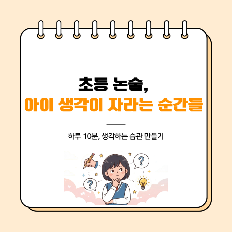 요즘 초등 공부를 보면 “문제를 읽고, 스스로 생각해 보고, 내 말로 정리하는 힘”이 점점 더 중요해지고 있어요 예전처럼 답만 맞히는 공부로는 교과 내용을 깊게 이해하기가 어려워졌고, 아이들이 스스로 생각을 정리하는 능력이 학습 전반을 좌우하는 흐름이 되었어요. 그래서 요즘 학부모님들 사이에서도 ‘초등 논술’이 다시 주목받고 있죠 논술은 단순히 글을 잘 쓰는 기술이 아니라, 아이의 머릿속에서 일어나는 생각들을 차근차근 정리해서 표현하는 힘을 키워주는 활동이기 때문이에요. 이제부터 “왜 초등 시기가 생각하는 힘의 골든타임인지” 그리고 “논술이 어떤 방식으로 아이의 문해력과 사고력을 키워주는지” 차근차근....... <img src="https://blogthumb.pstatic.net/MjAyNTEyMTFfMjM2/MDAxNzY1NDMwMDU1MDYy.sNL6q-gAylZvMBbpXlOU5PWCxguRC93vygn9-Y3E3xQg.atzcwu08IiAWMJ1LavKBskGgQp4qgnZ1GRxcZYAPOIog.PNG/1.png?type=s3" />