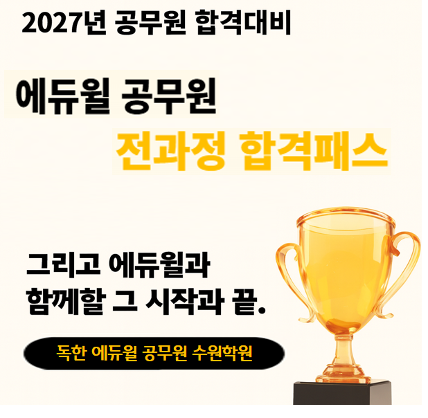 2027년 공무원 시험, 지금이 준비의 시작입니다 안녕하세요. 독한 에듀윌 공무원 수원학원입니다. 최근 들어 공무원 시험 경쟁률이 꾸준히 상승하고 있다는 소식을 자주 들으셨을 겁니다. 그동안 많은 분들이 공무원 지원을 망설인 이유는 일반 기업에 비해 낮은 연봉, 민원 업무의 부담, 경직된 조직 문화 등이었는데요. 이러한 문제를 개선하기 위한 공무원 업무 추진 계획이 2025년에 최종 확정되어 2027년까지 순차적으로 시행될 예정입니다. 이에 따라 연봉 인상, 민원 업무 법적 보호 강화, 추가 수당 지급 등 공무원의 근무 환경이 대폭 개선될 전망입니다. 이러한 변화로 인해 2026년 국가직 시험부터 경쟁률이 본격적으로 상승하고 있습....... <img src="https://blogthumb.pstatic.net/MjAyNTEyMTNfMTMy/MDAxNzY1NTkwMTc5NDc4.alG_AFO-bdIea4-tyX8HQh2nN2d-nMvYNQruwe0-JOkg.B9EACx_hrF4VqcW6ctK7AVFaqCyVIjDayt4_Pr4PVbUg.PNG/image.png?type=s3" />