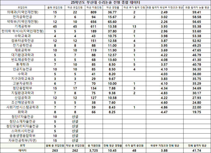 26학번을 위한 부산대 수리논술 전형 3개년 입시결과