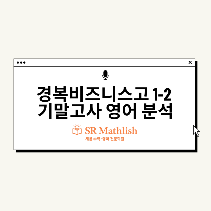 안녕하세요, SRmathlish 학원입니다. 기말고사가 끝난 경복비즈니스고 고등학생 여러분들 수고 많으셨습니다! 오늘은 경복비즈니스고 1학년 2학기 기말고사 시험 분석에 대해 알아보겠습니다 이번 기말고사는 내용 일치 유형이 약 33%로 가장 큰 비중을 차지했습니다. 이는 지문을 대충 이해하는 수준이 아니라, 세부 정보와 선택지를 정확히 비교·판단하는 독해력이 성적을 좌우했음을 의미합니다. 또한 **지문 흐름 유형이 약 26%**로 높게 나타나, 문장 하나하나의 해석보다 글 전체의 전개 구조와 논리적 흐름을 파악하는 능력이 중요했습니다. **문법과 주제 유형은 각각 약 15%**로, 기본 문법 개념과 글의 중심 내용을 정리하는 능력을 고....... <img src="https://blogthumb.pstatic.net/MjAyNTEyMTNfMTEw/MDAxNzY1NjAwMjIzNDE1.XBvCGhYsuhPKW3zmiAEZTjgLhGldCMwHSJeowUWhsvog.ee0rt7XrhJ-8hBCHkLvJeMOy00oCixJ0ve7_ON6lSbkg.PNG/1.png?type=s3" />
