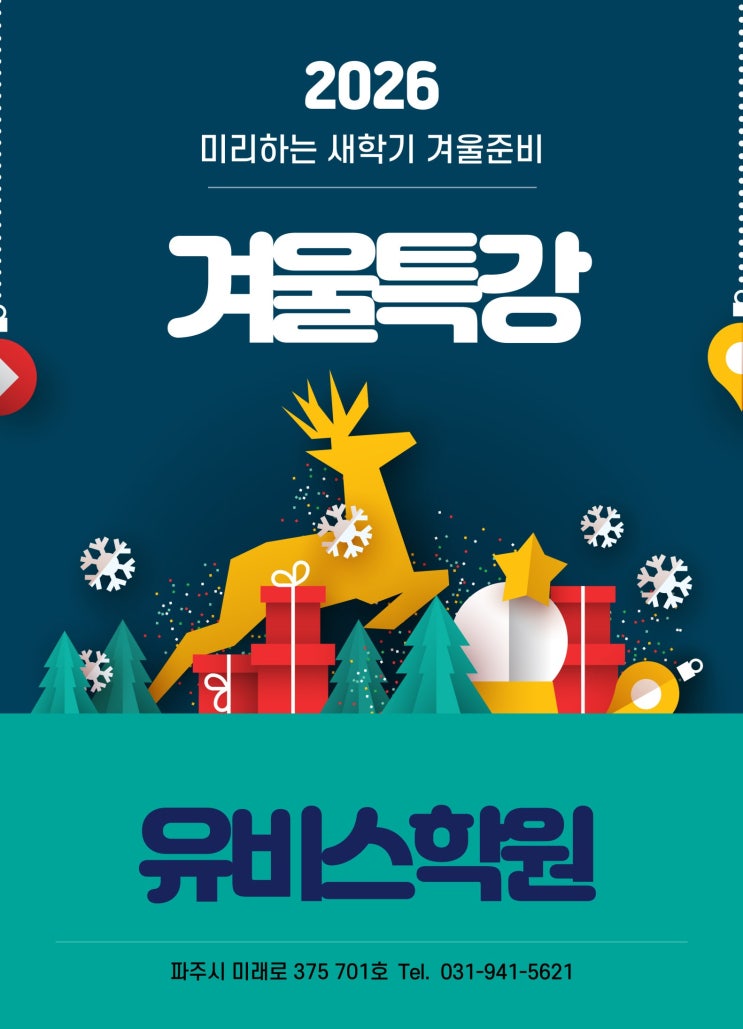 예비 중1·2 겨울방학 | 수학 정규+특강 수업 안내 그동안 안녕하셨는지요? 2025년 새해가 엊그제 같은데 벌써 한 해를 마무리하는 12월이 되었습니다. 이제 학생들의 학사 일정도 2주가 채 남지 않은 시점에서 이렇게 안내문을 드리게 된 것은, 이번 겨울방학을 맞이하여 방학 특강 프로그램을 진행하기 위한 사전 안내를 드리기 위함입니다. 겨울방학은 새 학년을 맞이하는 중요한 변화의 시기입니다. 이 중요한 변화의 시기를 어떻게 보낼 것인가? 하는 것에 관한 질문은, 학부모님도 학원도 선생님들도 가장 깊이 고민하는 부분이기도 합니다. 앞선 과정의 결손을 채우기도 하고, 또 현 학년을 잘 마무리한 친구들은 상위 학년의 선행이나 난....... <img src="https://blogthumb.pstatic.net/MjAyNTEyMTJfMjcx/MDAxNzY1NTI4OTA4Mjgy.f0J_rmExa5tI6Bv_fKnRZ3QmlJ9C5MokkZEtIrWV7Scg.wMAt50woY6t50TpVRqsuQZ5R7tV-1gPI7z0GGMocTngg.JPEG/%B0%DC%BF%EF%C6%AF%B0%AD.jpg?type=s3" />