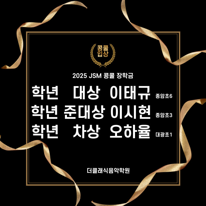 우리 친구들이 1.2.3등을 하고 돌아왔어요 !! 2025년도 빛내준 우리 친구이네요 언제나 꼼꼼한 지도법으로 테크닉과 음악성까지 잘 다듬으며 지도 약속드려요 :) <img src="https://blogthumb.pstatic.net/MjAyNTEyMDNfOTIg/MDAxNzY0NzQ1MzY4NzYy.iejRgUsyb5zUZvT4zMYW10kYSz_hDQX0rZ9u02MJQckg.BCbpmgbxBOjgTN3F5O2GxI6Y2oYsfxHnmymy3MTSHlkg.PNG/IMG%A3%DF4225.PNG?type=s3" />