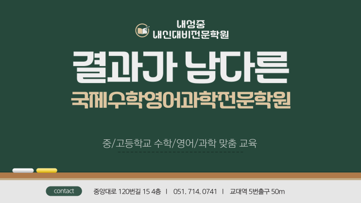 소수정예 맞춤형 학습 관리가 필요한 이유!! 기초가 부족한 학생들이 기존 학원에서 성적이 잘 나오지 않는 이유!! 충분한 질문 시간을 확보하지 못해서... 자신에게 맞는 학습 방법이 아니기 떄문에... 국제학원은 모든 과목을 중고등부 전문선생님이 개인별 학습 관리를 통해 체계적으로 내신 관리를 진행하고 있습니다. 효율적인 성적 관리를 원하는 학생 기초가 부족해서 기초를 다지고 싶은 학생 자신에게 맞는 선행을 원하는 학생 국제수학영어과학전문학원에서 학생들의 성적을 책임지겠습니다. 보다 자세한 문의는 학원으로 연락주세요 문의) 051-714-0741 <img src="https://blogthumb.pstatic.net/MjAyNTEyMTJfMjc3/MDAxNzY1NTE0NTE4OTM5.TVPnHr-j1oVrBdF7U6muTGA84wOWPgOZoQLJmN9GhHMg.yG9DOa1AJLfEiEeLRKowKgY0-Nsfx_QM_CjJ6yMmol8g.PNG/%C1%A6%B8%F1%C0%BB_%C0%D4%B7%C2%C7%D8%C1%D6%BC%BC%BF%E4_%2811%29.png?type=s3" />
