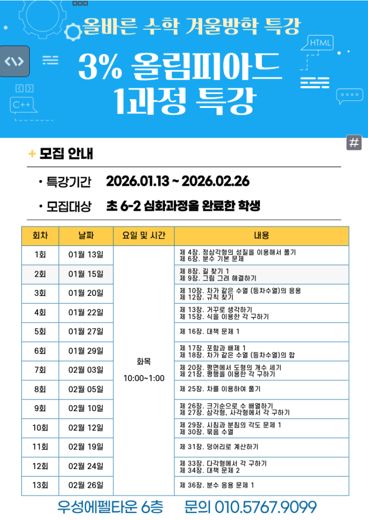 수미사 중계관] 은행사거리 수학학원 겨울방학 특강안내