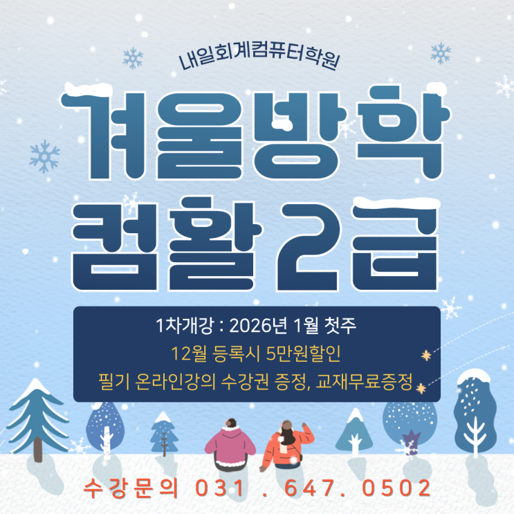 평택컴퓨터학원 컴퓨터활용능력2급 겨울방학 자격취득반 모집안내(예비고등학생, 예비대학생, 일반인 모두 수강 가능)
