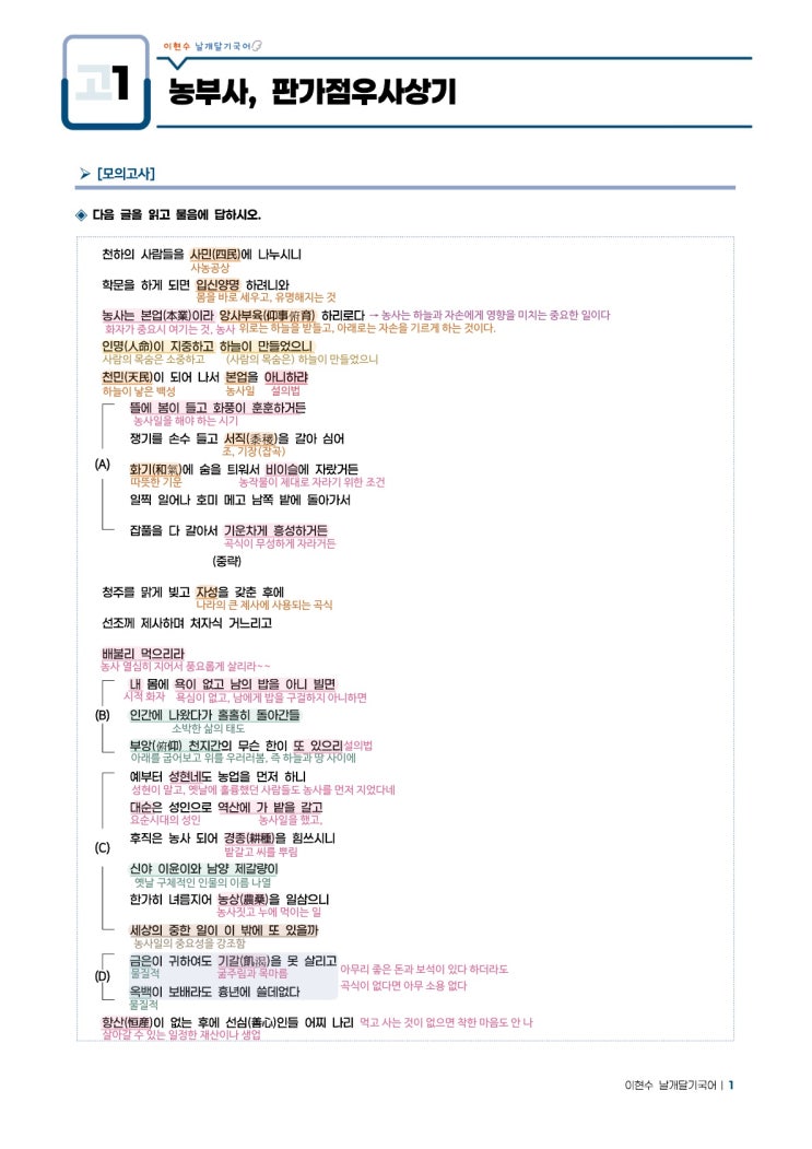 [10월 모의고사] 갈래복합 농부사, 판가점우사상기 해석필기