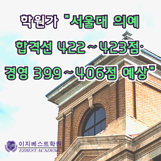 <교육뉴스> 학원가 "서울대 의예 합격선 422∼423점·경영 399∼406점 예상"