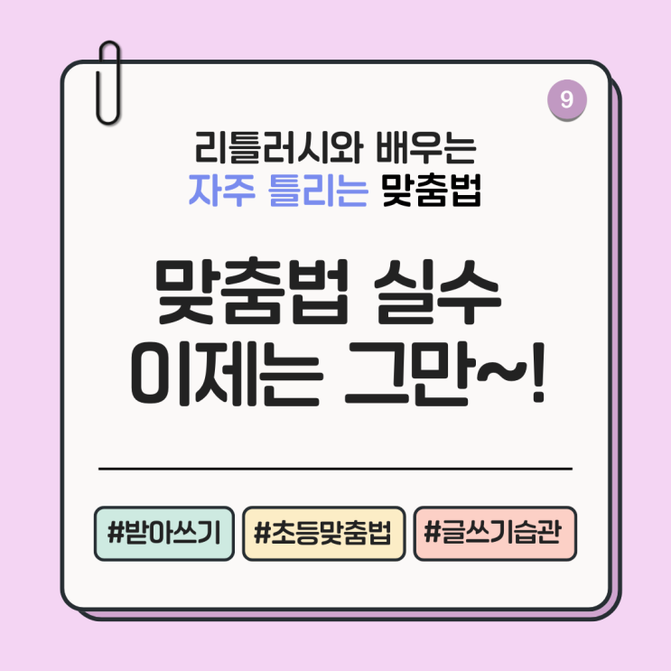 [리틀러시문해력] 자주 틀리는 맞춤법 9탄