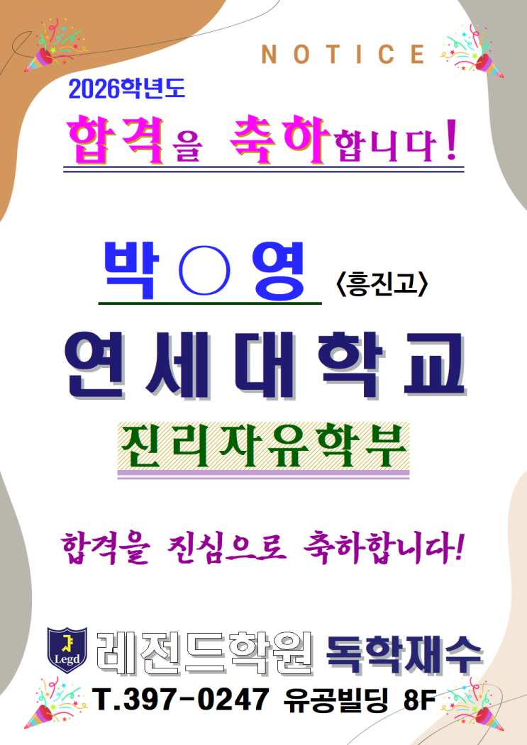 [마루지동백센터]26학년도 대입 합격 소식! 합격을 축하합니다!
