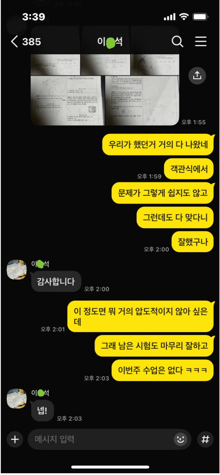 25년의 일정이 기말고사를 끝으로 마무리 되었습니다. 기말고사는 중학생 친구들 제외하고 전부 좋은 성과를 냈습니다. 끝까지 따라와 준 아이들에게 고맙다고 얘기해주고 싶고 끝까지 각고의 정성을 다해 완주했기에 고생했다고 말해주고 싶습니다. 중학생 친구들에게는 미안하다고 말해주고 싶네요... 어려운 단원인데 제가 시간계산을 잘못해서 충분한 훈련을 못했습니다. 부모님들께도 면목이 없습니다. 죄송합니다. 잘 보고 와준 친구들을 소개하고 마무리하겠습니다. 석이와 관련해서는 전교1등의 공부법 으로 돌아오겠습니다. 저는 항상 최선을 다하라는 명령을 합니다. 예를 들어, 3분남았는데 두 문제가 남았다면 만만한 것 잡고 이 문....... <img src="https://blogthumb.pstatic.net/MjAyNTEyMTdfMTYg/MDAxNzY1OTUzMDIwMDgz.q1aiel7_mi1hMw45iS5l2Fc1JXTFg2RNrILeqHhoGxQg.KE2-yrOLMEG1PHMySEt2PUzCvlkDs5pJ_61loGhhUpQg.JPEG/3.JPG?type=s3" />