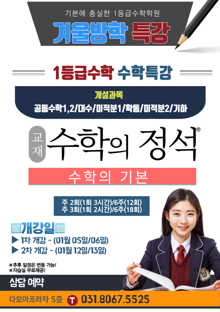 아무리 강조해도 지나치지 않은 겨울방학!!! 세월이 아무리 지나도 개념서로서는 정석만한 교재가 없다. 수학에는 편법은 없다. 정통 수학학원으로서의 자존심은 결과로써 증명한다!! 공부에 뜻을 품은 이만 노크 부탁요^^ <img src="https://blogthumb.pstatic.net/MjAyNTEyMTJfNTIg/MDAxNzY1NTE3OTM5MDY5.54oQFgeSI3I2l3jx0Q53DXqjSq7fwat7g7hl2W7moJkg.NnOQRPYeHO56EnQNZKfZRFZuWqUINT7vPEjIpoYDjhYg.PNG/%B0%DC%BF%EF%B9%E6%C7%D0_%C6%AF%B0%AD2026%B3%E2.png?type=s3" />
