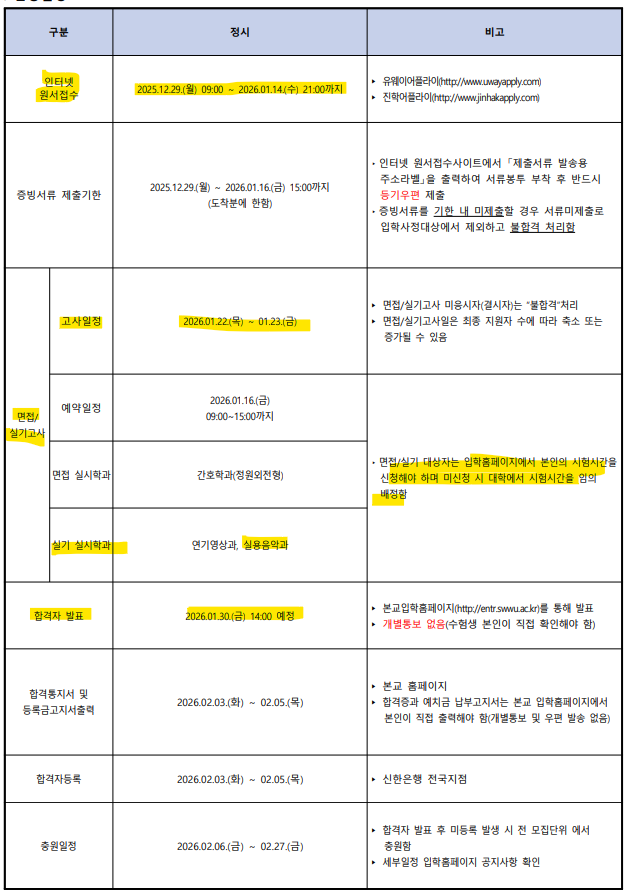 [광명실용음악학원] 2026학년도 수원여대 실용음악과 입시요강(정시)