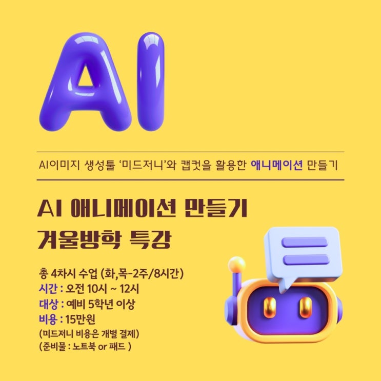 AI 애니메이션 만들기 겨울방학 특강 ✔️ 신청하세요 ✨